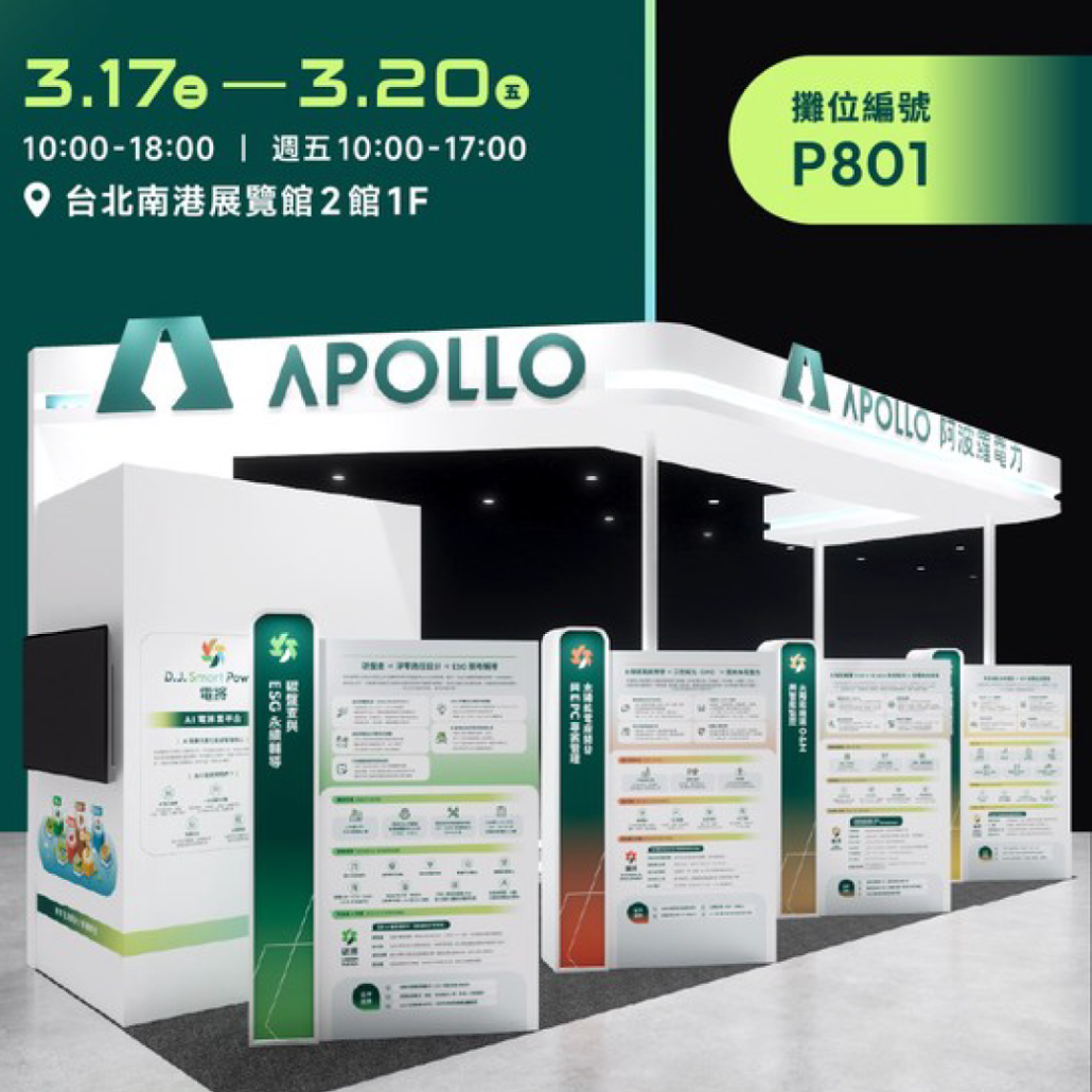 「2026智慧城市展暨淨零城市展」是亞洲最具規模的智慧城市專業展會,也是推動全球淨零排放轉型的重要指標平台。隨著人工智慧(AI)算力需求激增,以及全球邁向 2050 淨零目標,企業對電力供應的「穩定度」與「綠電比例」需求達到前所未有的高度。阿波羅電力今年受邀參展,於南港展覽館 1 樓盛大展出。